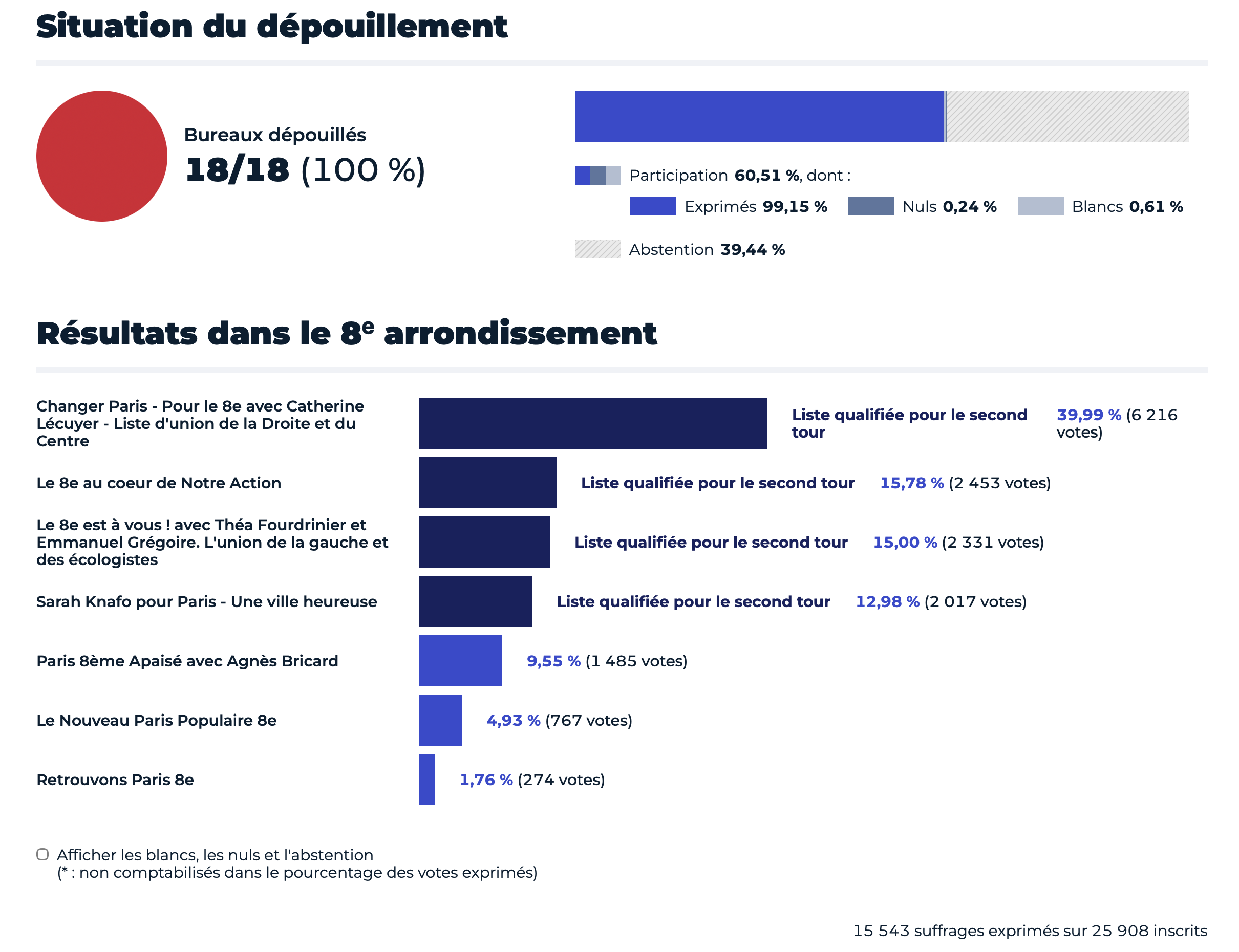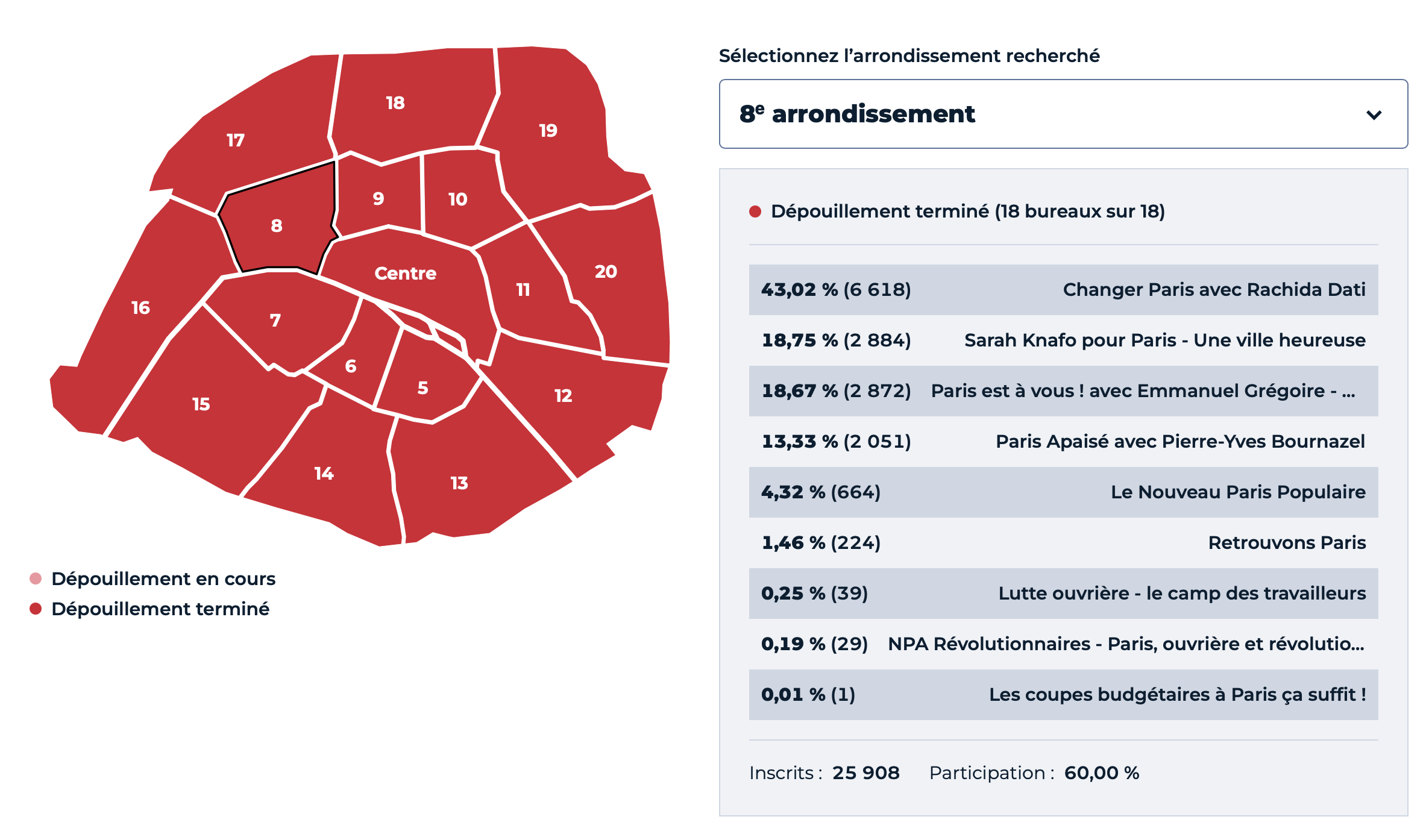 Les résultats des élections du 15 mars 2026 dans le 8e