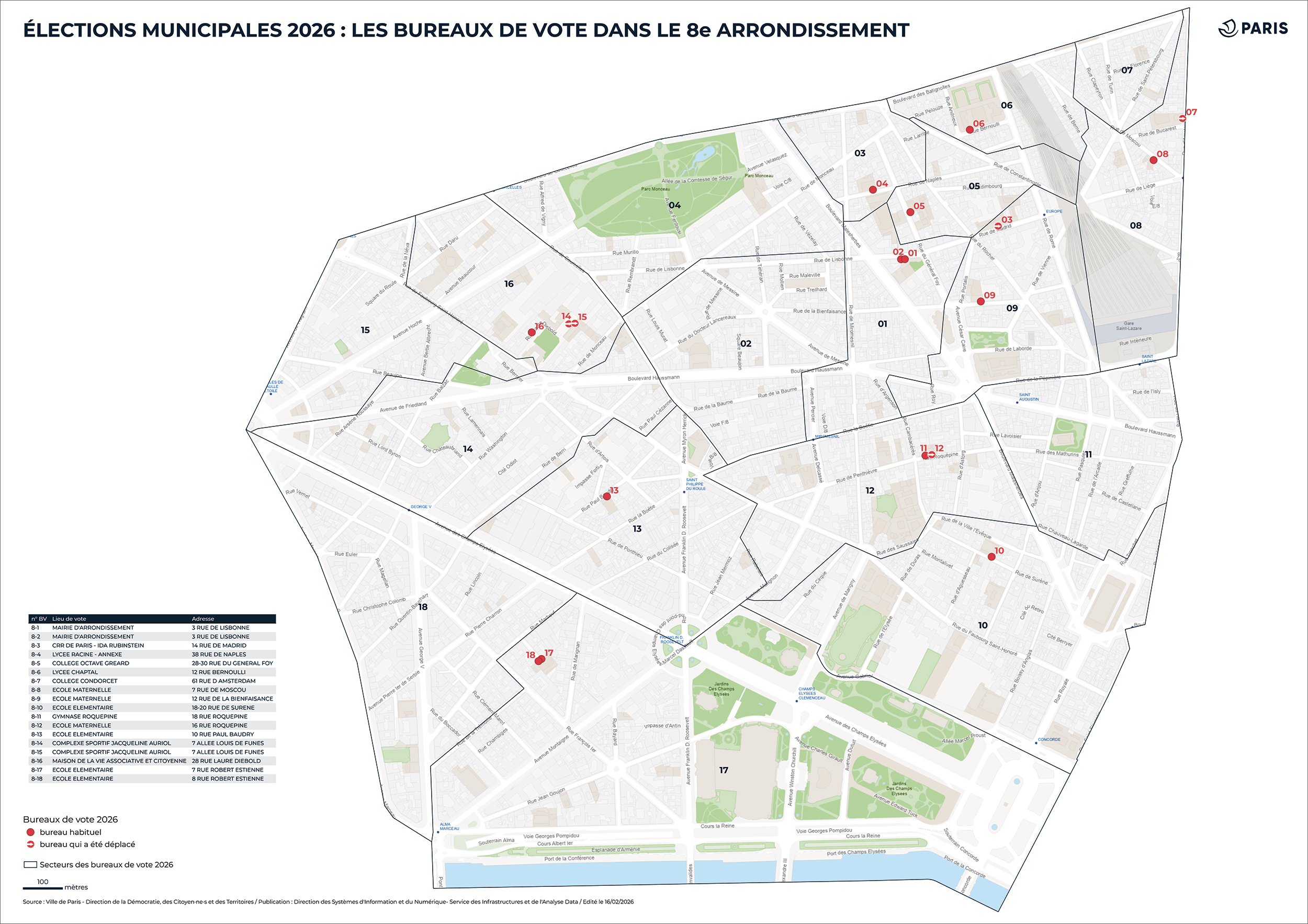 Chaque bureau de vote doit organiser deux parcours complets de vote, l’un pour le Conseil d’arrondissement et l’un pour le Conseil de Paris. Plusieurs bureaux de vote du 8e arrondissement